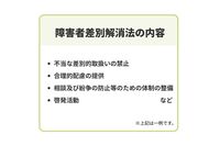障害者差別解消法は2016年に施行された法律で、障害を理由とする差別を禁止する対策を定めています。差別解消のための措置として「不当な差...